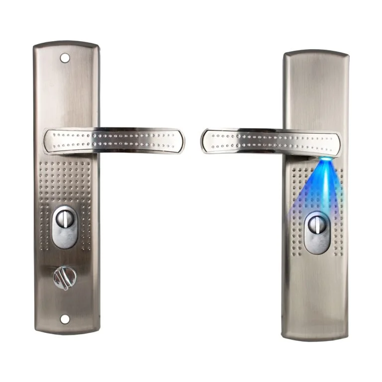 Maner universal usa exterior, cu sild si LED iluminare cilindru, inchidere standard, fara functie de inchidere prin ridicarea manerului, cu deschidere in partea stanga.